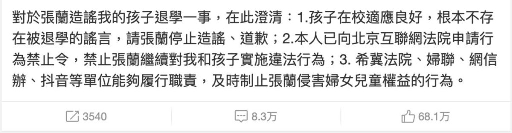 昨日(8日)就連抖音官方也出手,發聲明宣布張蘭與汪小菲的抖音帳號將被無限期封禁。