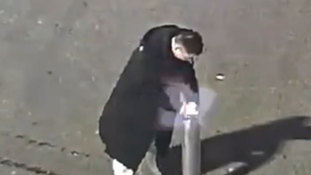 男子放妥煙花炮后,向身旁另一名男子借用打火機。之后,男子伸手入煙花炮頂部,疑似取出引線,期間男子頭部處煙花炮發射口正上方。