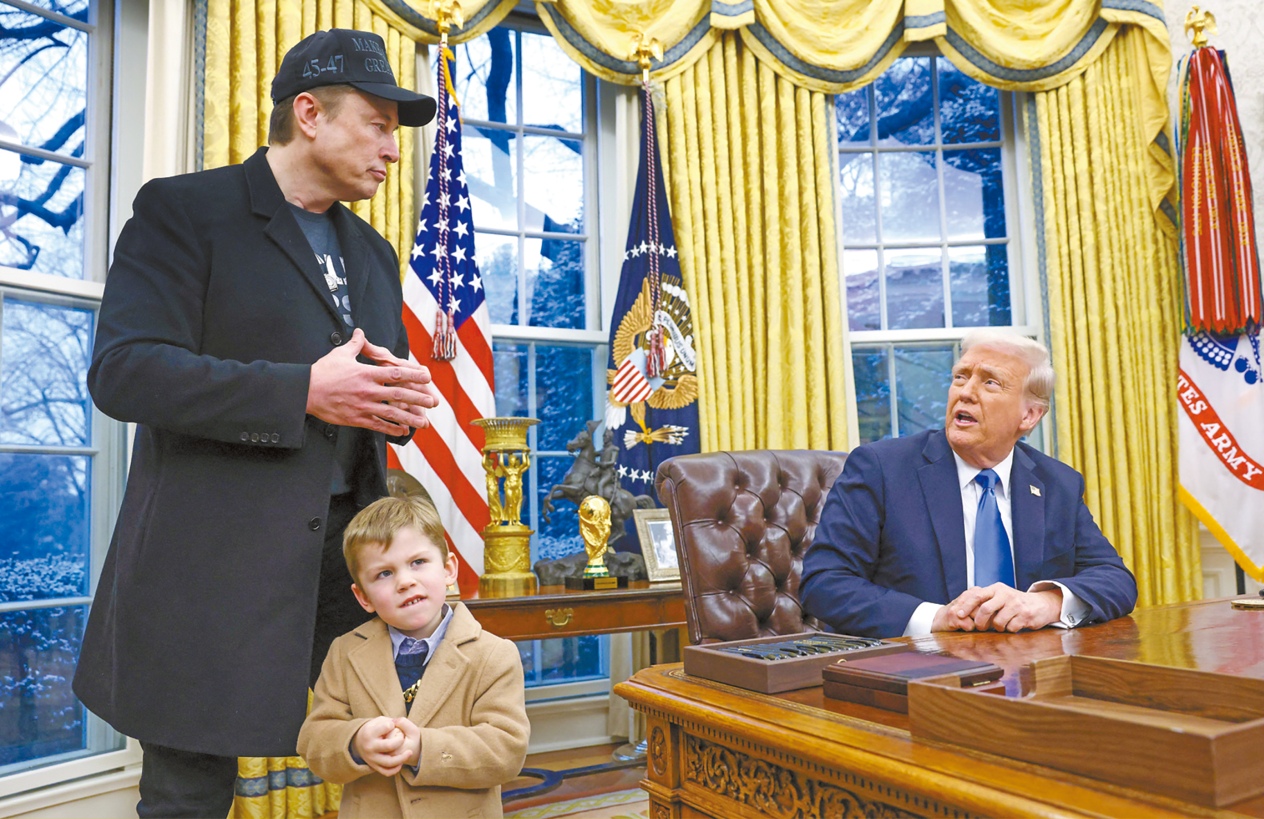 總統特朗普與馬斯克11日在白宮橢圓形辦公室會面。路透社