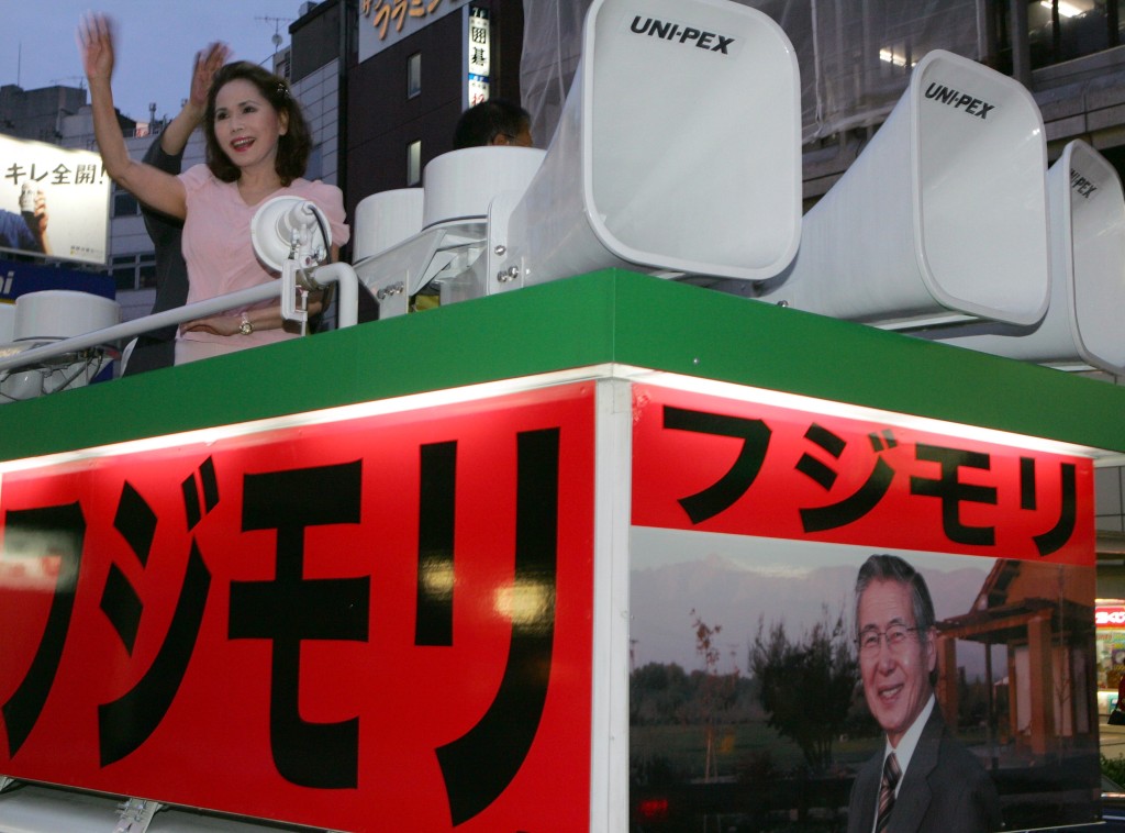 ▲2007年,黛薇夫人在東京為秘魯前總統藤森參選日本參議員拉票。 美聯社
