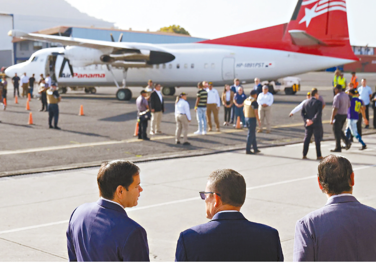 圖為美國國務卿魯比奧(左)日前在巴拿馬城機場查看從美國遣返移民的航班。 法新社資料圖片