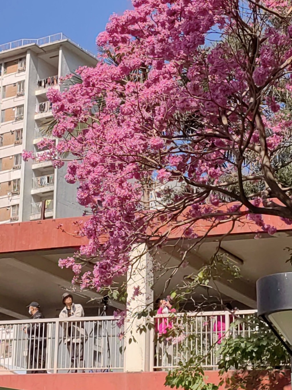 位于粉嶺中心近祥華邨一帶的行人天橋,旁邊種植了數棵紅花風鈴木,每年2月盛放時都會形成一大片紫粉紅花海,畫面夢幻。有網民近日分享花況,指現時紅花風鈴木已進入全盛時期,正在燦爛盛放!風鈴木上密集的花朵把整個樹冠染成紫紅色,遠看貌似大量粉紅繡球花盛放,將行人天橋染成一片粉紅,觀賞價值極高,引來不少攝影發燒友前往拍攝留念。不少網民亦大贊夢幻:“景色不輸日本!”