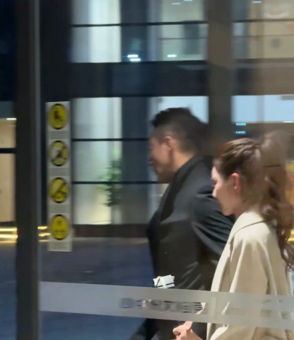 ▲汪小菲身穿筆挺的黑色西裝,而身旁的馬筱梅則數起馬尾,身穿淺灰色大褸及米黃色長褲,二人十指緊扣地步出餐廳門外,相當恩愛