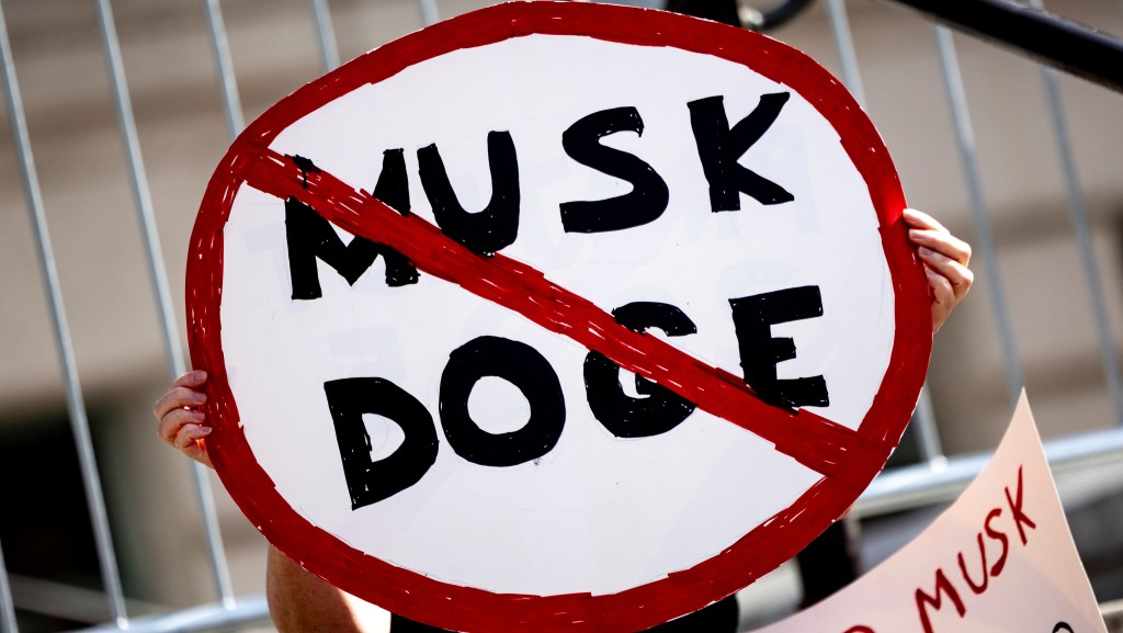 ▲美國示威者反對“馬斯克效率部”。美聯社