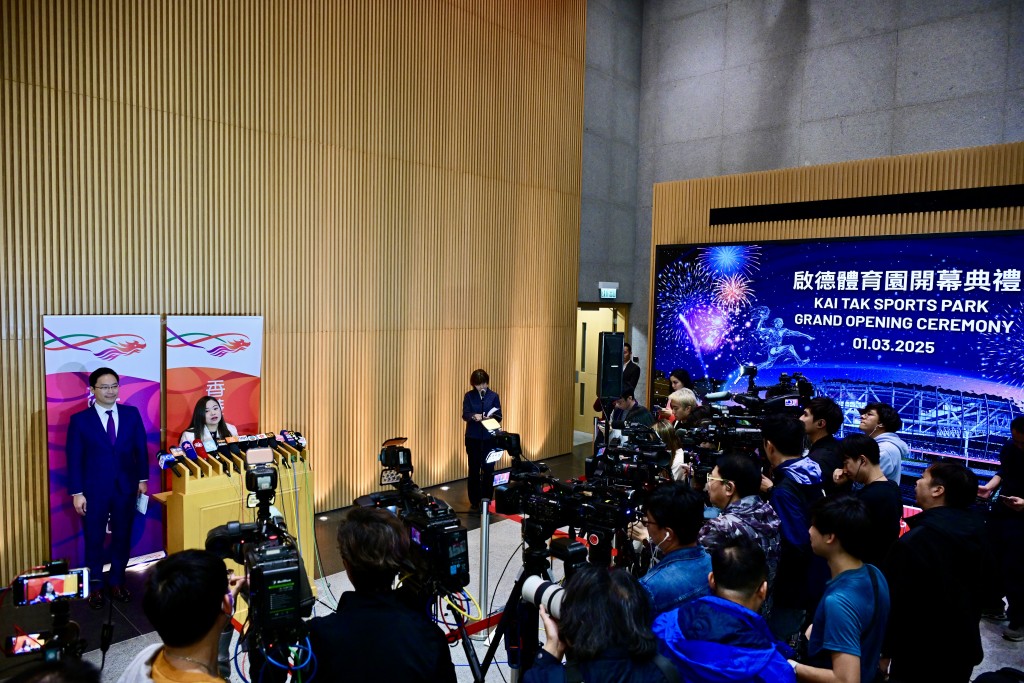 ▲羅淑佩介紹啟德體育園開幕禮詳情。劉駿軒攝