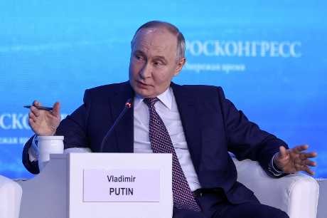 ▲普京周五在莫斯科一個科技論壇上發言。路透社