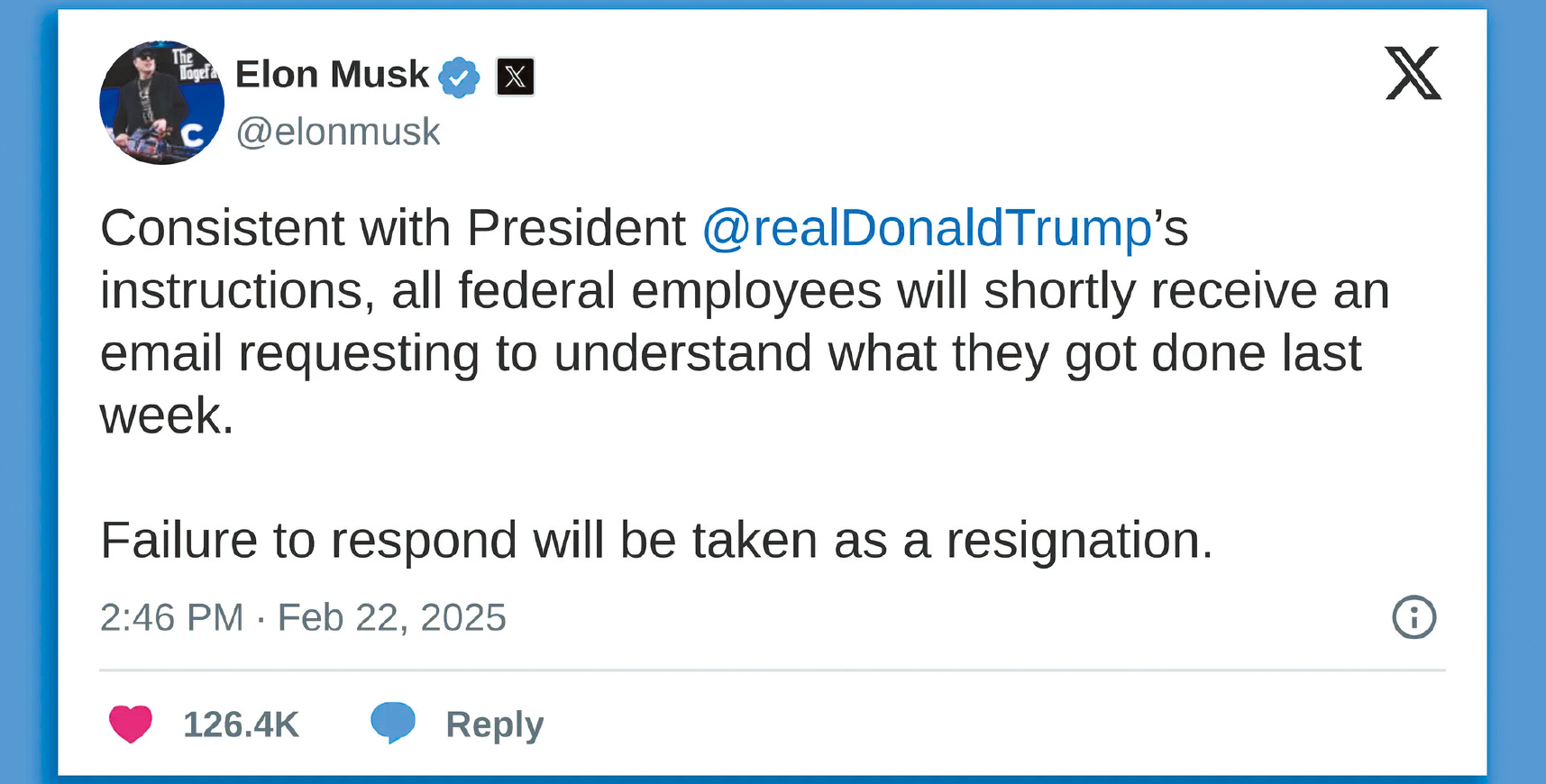 在過去兩天的爭議中,馬斯克首先向全體公務員發出電郵,要求眾人在24日午夜之前提交報告,描述自己的工作性質和內容,不回者將被視為自動辭職,但國務院、聯邦調查局(FBI)、衛生部等部門紛紛抗命,管理層表示此舉可能洩漏敏感資料或國家機密,前線員工不必遵從。