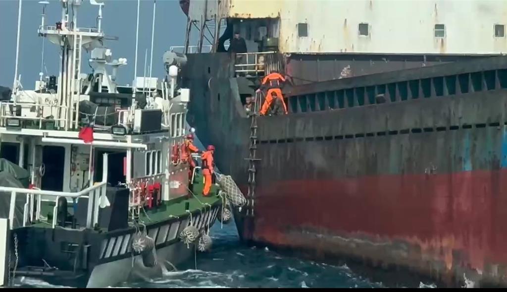 臺灣“海巡署”人員登上“宏泰”貨輪調查。