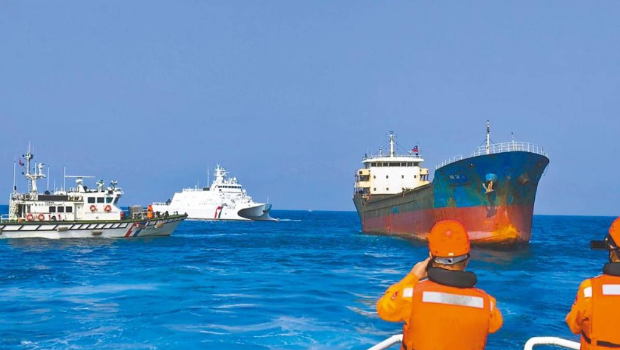 ▲“宏泰”貨輪(右)疑涉扯斷臺澎海域的海底電纜。