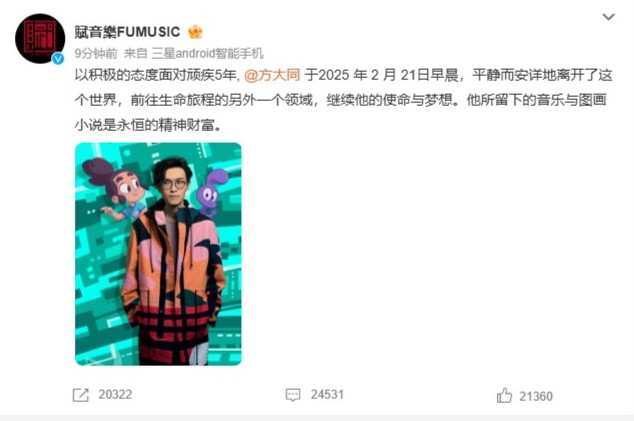 方大同離世|賦音樂3月1日發文全文: