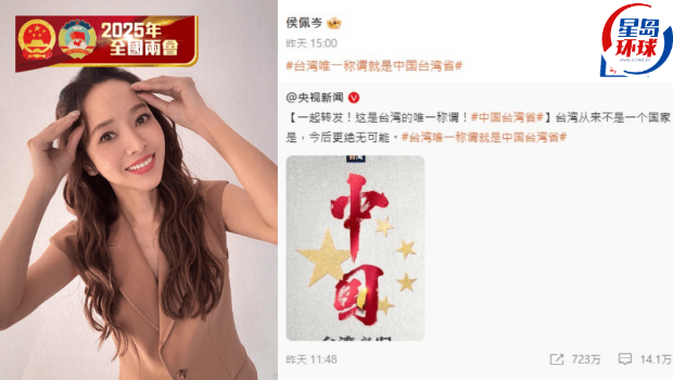 兩會2025|王毅強調“中國臺灣省”,侯佩岑、歐陽娜娜等臺藝人轉發央視圖片