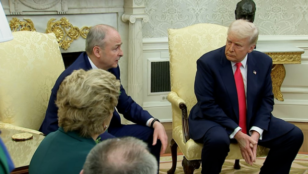 ▲當地時間3月12日,美國總統特朗普(右)在白宮會見到訪的愛爾蘭總理馬丁。圖源:英國天空新聞網