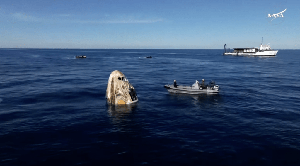 NASA太空人滯留逾9月終“回家”,SpaceX龍飛船順利落入佛州附近海面