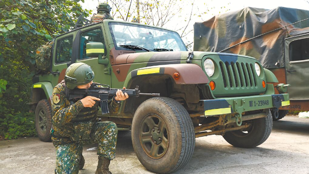 ▲臺軍17日起執行為期5天“立即備戰操演”,戰備部隊18日在北臺灣海岸線演練關鍵基礎設施防護等科目。(圖部分去識別化)中時