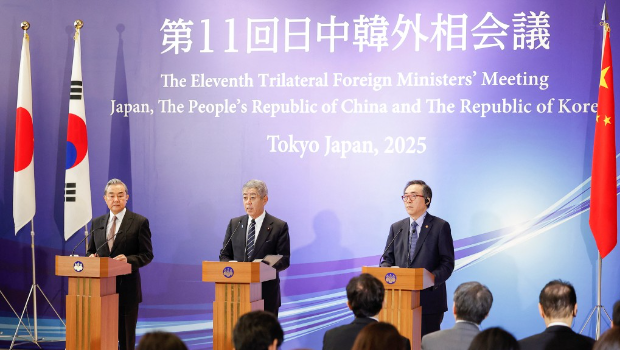第11次中日韓外長會議周六在日本東京舉行,中共中央政治局委員兼外長王毅、日本外相巖屋毅和韓國外長趙兌烈與會。王毅指討論有建設性,三國有必要加強溝通及增進互信,并指三國正努力盡快重啟自貿協定談判。而日本外務大臣巖屋毅表示,透過對話與合作克服分歧與對抗變得更為重要,三國外長已同意加強合作。