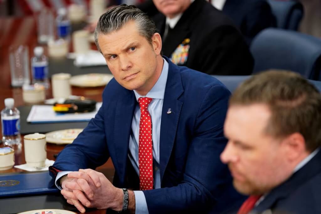 美國國防部長赫格塞思(后)因大西洋月刊總編“被誤入”國安群組遭議員怒批無能。路透社