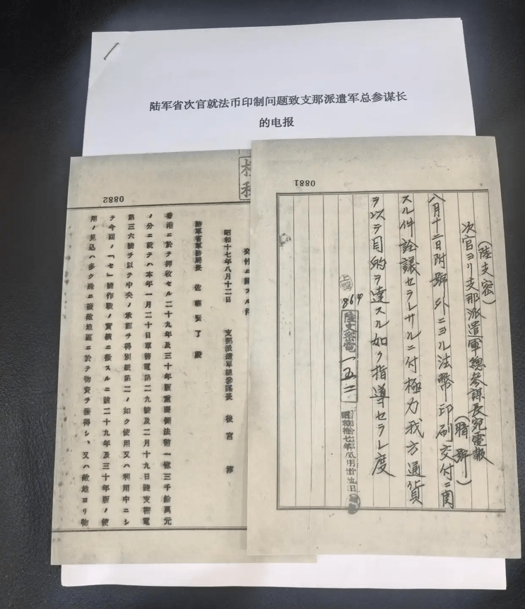 侵華日軍在香港偽造國民政府法幣的日文檔案史料。 央視新聞