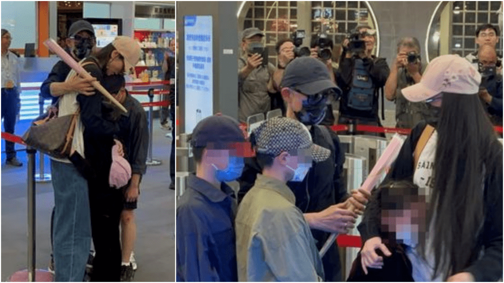 ▲亞亞離境前跟老公、孩子擁抱道別。 ETtoday