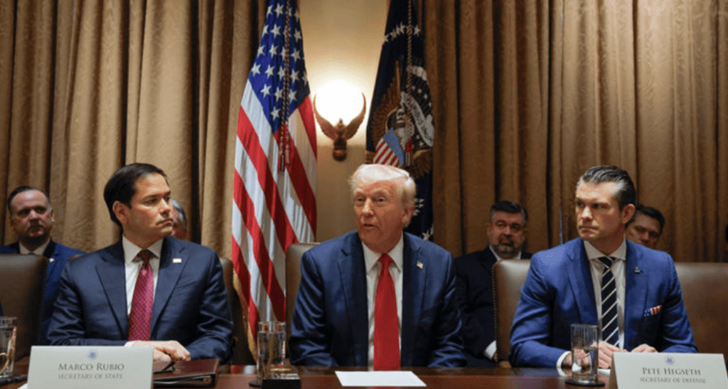 美國總統特朗普及國務卿魯比奧、國防部長赫格塞斯。美聯社