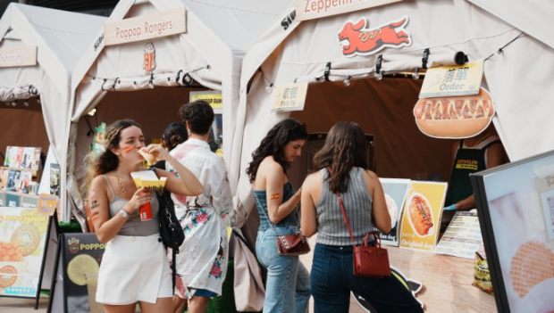 記者下午約3點到啟德主場館旁海濱位置的“啟德美食海灣嘉年華”,現場有超過28個美食攤位,售賣各種小食,包括35元一份雞蛋仔、30元一份6粒餃子、30元一份10粒炸燒賣、29元一份“混醬熱狗”、40元一份德國酸菜熱狗、68元一份明太子蟹肉玉子燒。