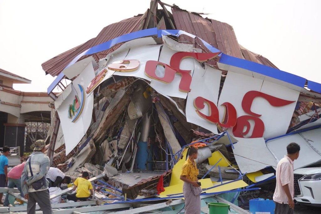 ▲3月28日在緬甸曼德勒省拍攝的地震后受損的建筑。 新華社