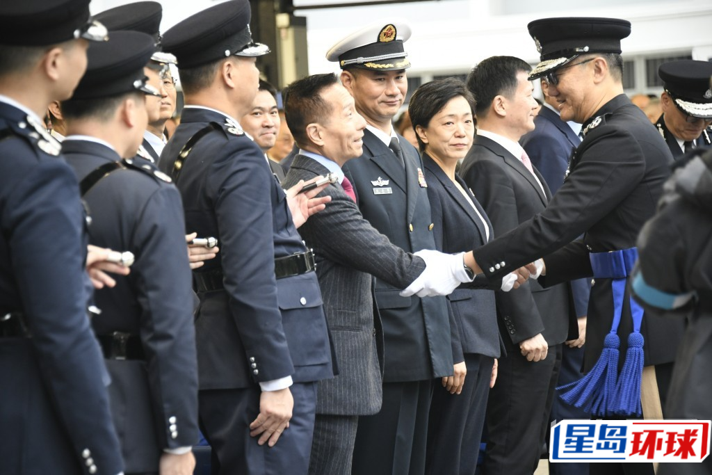 ▲蕭澤頤最后一次以警務處處長身份在香港警察學院結業會操典禮中任檢閱官。