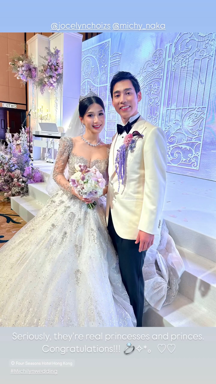 蔡頌思與日籍金融才俊老公的婚禮原來在前日(29日)舉行,上午先進行接新娘及注冊儀式,晚上在五星級酒店筳開廿多圍。獲邀出席的汪明荃在IG貼上多張相并說:“參加蔡冠琛先生太太嫁女婚宴,一對新人Jocelyn/Mikie,郎才女貌非常登對。恭祝一對新人甜蜜幸福,開開心心。恭喜蔡先生及太太新任外父外母。恭喜恭喜!”蔡頌思身上金器相當夸張,龍鳳鐲掛滿身,頭上又戴有金鳳冠,頸上的金鏈比PIZZA還要大,果然富貴逼人。
