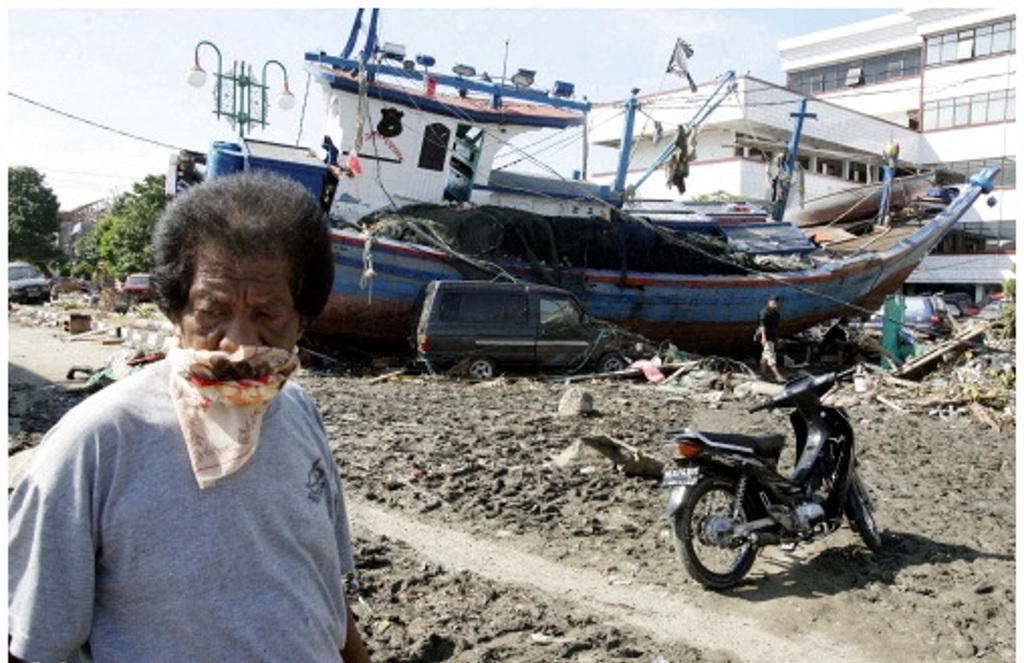 ▲2004年蘇門答臘-安達曼群島地震引發海嘯,將印尼亞齊省一艘漁船沖到陸地上。(資料照/路透)