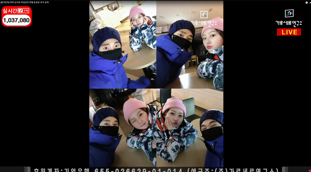 《橫豎研究所》31日晚間開直播,公開多張金賽綸、金秀賢疑似滑雪場約會自拍照、金賽綸睡覺照片、KakaoTalk聊天記錄,戀愛影片中金賽綸親自下廚煮辣炒雞給金秀賢吃等內容。