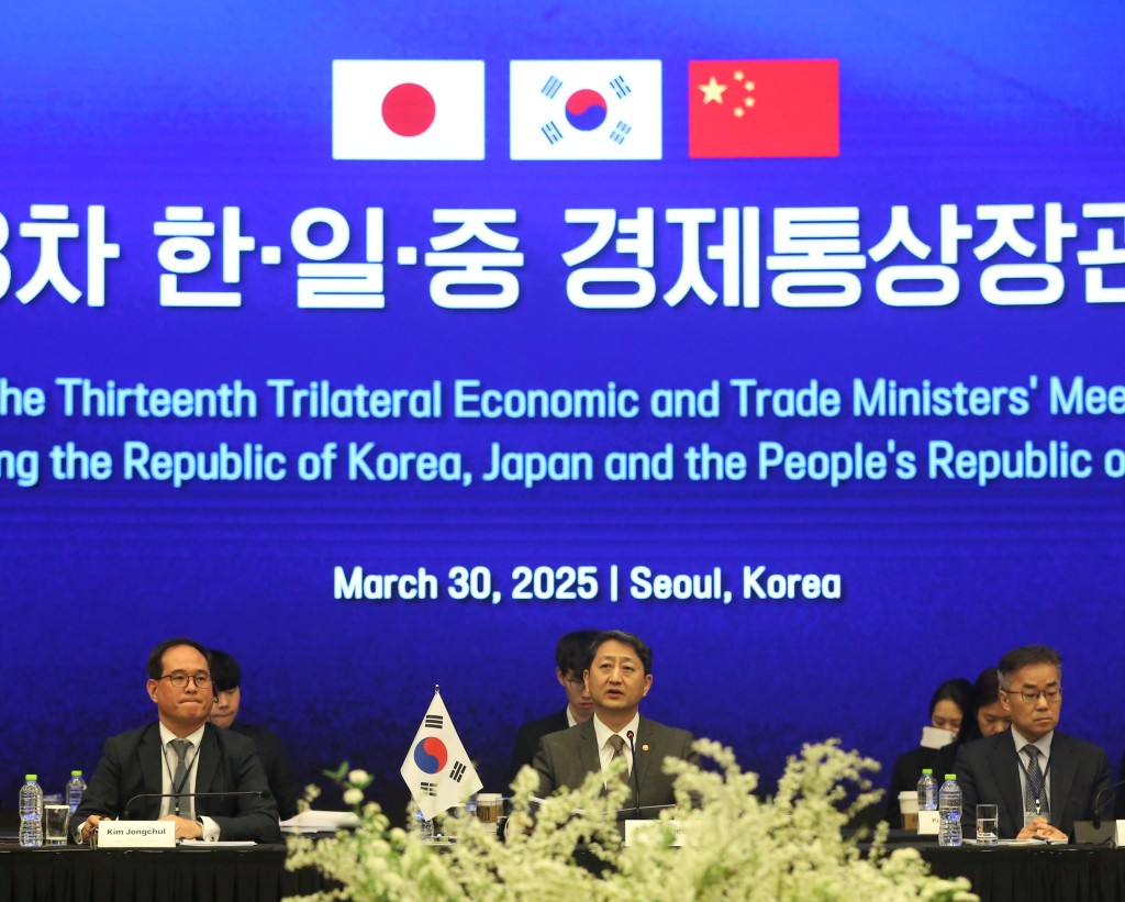 ▲第13次中日韓經貿部長會議3月30日在韓國首爾舉行 。 美聯社