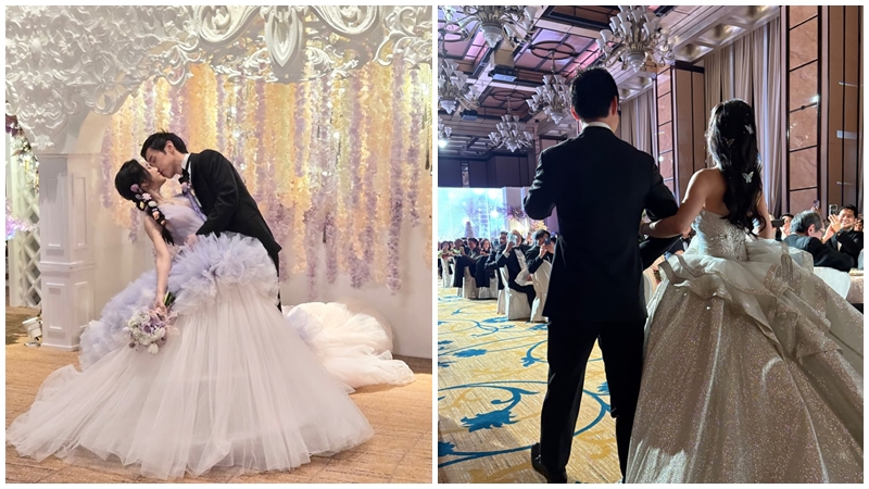 蔡頌思與日籍金融才俊老公Michihiro Nakaguchi的婚禮大前日在四季酒店舉行,蔡頌思的爸爸蔡冠深是香港新華集團主席,同時亦是全國政協常委及香港中華總商會會長; 媽媽蔡關穎琴是新華集團顧問及法律總監,亦是團結香港基金顧問,曾獲銅紫荊星章、榮譽勛章、太平紳士等名銜,特首李家超上臺祝賀,前律政司司長梁愛詩為一對新人證婚,還有不少政商界兼名人好友出席,見證蔡頌思的人生大事。蔡頌思的婚禮相當夢幻,似十足公主和王子的童話式婚禮?,F場有設有不少以粉色為主的小色,喜帖設計亦見燙上金邊,還有多張巨型婚紗相,回禮亦選用了粉紫色包住的朱古力。嘉賓方面,蔡頌思邀請了不少好友,包括恩師張達明、TVB高層樂易玲,與及在選美場上認識的女生。