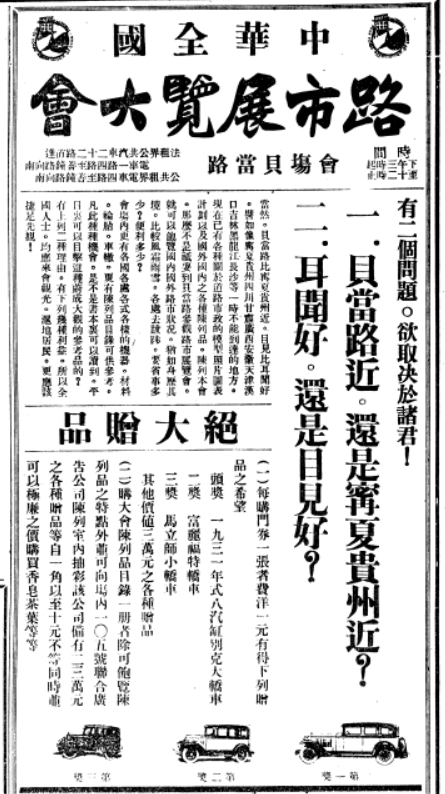 1931年,是中華全國道路建設協會建會10周年,在上海舉辦路市展覽會便強烈要求有國產汽車參加。1931年9月12日,民生汽車駛入上海,參加該展覽會,與福特、別克、雷諾等知名汽車一起放在展廳中央。