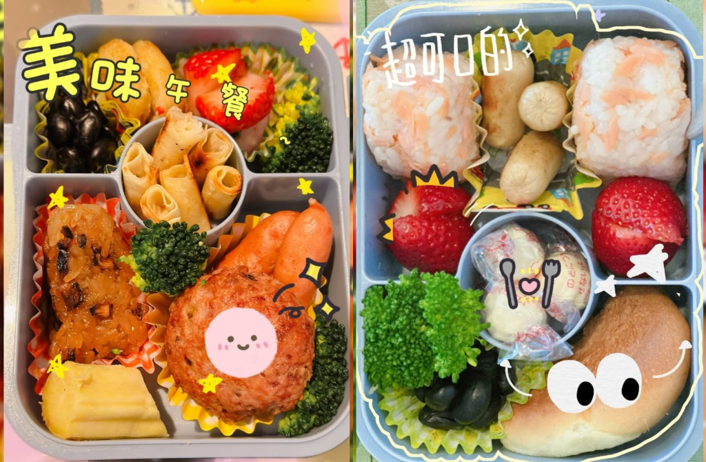 可以看到每份便當里有肉、有菜還有水果,還切成適合小孩子入口的大小,在兼顧營養均衡的同時,也顧慮到美觀,無論擺盤還是顏色都相當講究,足以顯現林志玲為孩子所付出愛心與耐心,也完美展現日本家庭主婦的便當文化。