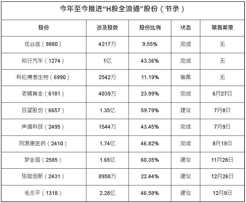 今年以來已有23只港股推動H股全流通,正處于不用階段,近日老鋪黃金則已完成為24%內資股轉換成H股,令H股比例提升至80.28%。這些轉換股份包括前期個人投資者陳國棟;以及組成控股股東的“紅喬金季”與“天津金橙”,背后主要由創辦人徐高明及公司股份激勵平臺持有。