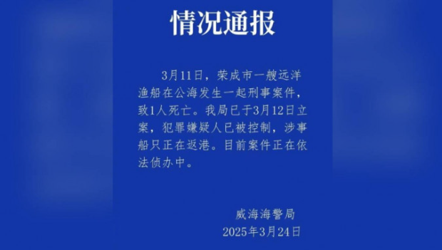 遠洋漁船船長遭殺拋尸落海,威海海警拘捕疑犯