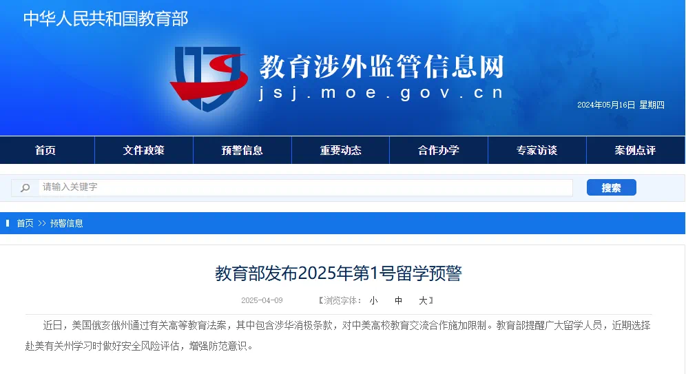 今天,國家教育部發布的一條預警,可能讓一些正在或將要去美國留學的同學們心里一緊。
