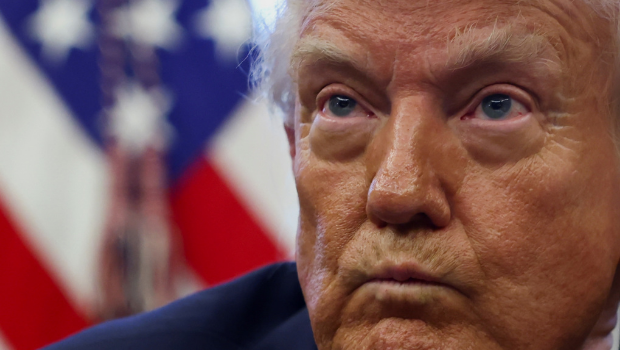 ▲美國總統特朗普17日在白宮橢圓形辦公室簽署行政命令時的神情。(路透)