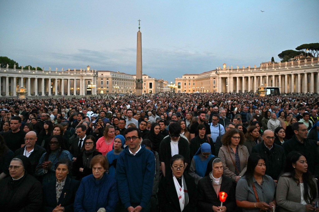 信眾在圣伯多祿廣場哀悼教宗。法新社