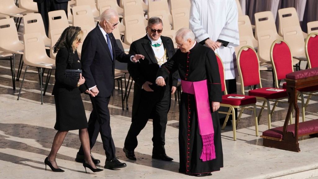 美國前總統拜登與妻子吉爾抵達圣伯多祿廣場。