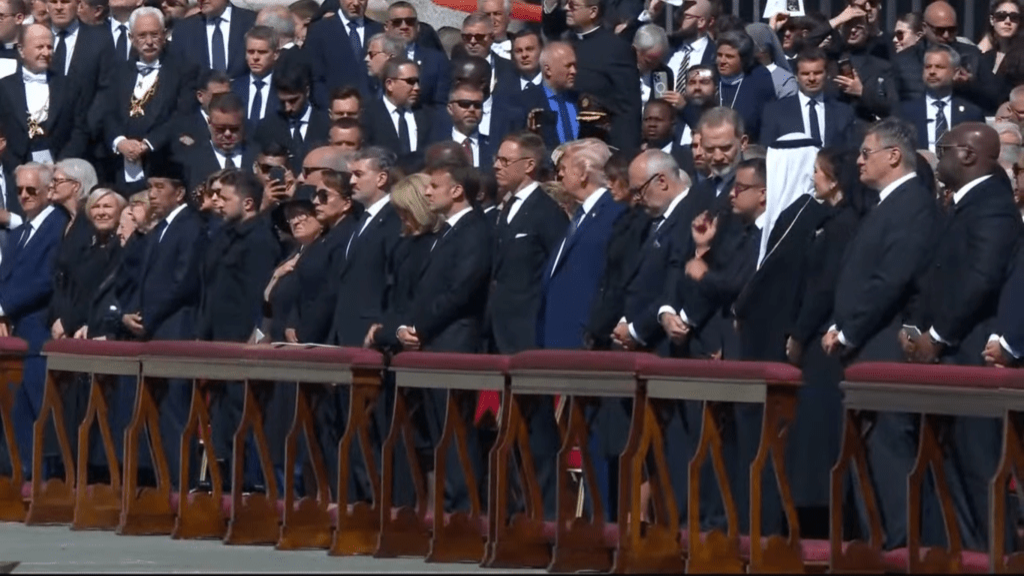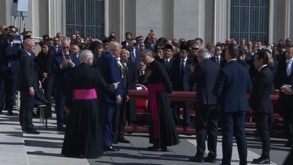 【16:23】烏克蘭媒體引述烏克蘭總統澤連斯基發言人尼基福羅夫(Serhiy Nikiforov)稱,澤連斯基在葬禮開始前與特朗普會面。他們上一次會面是今年2月在白宮橢圓形辦公室公開吵架。白宮也證實此消息。