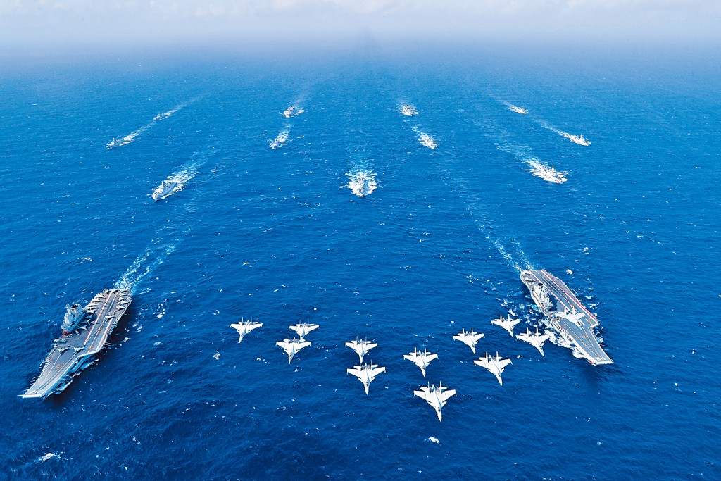 ▲遼寧艦和山東艦航母編隊首次展開雙航母編隊演練。