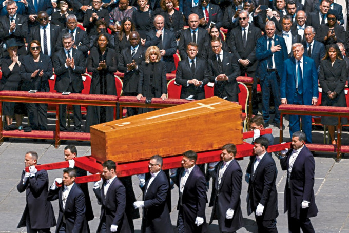 特朗普夫婦和法國總統馬克龍夫婦等,周六在圣伯多祿廣場的葬禮上目送教宗方濟各靈柩。