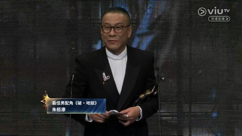 21:33 廖子妤及梁雍婷頒發最佳男配角獎,由《破 · 地獄》的朱栢康奪得。 朱栢康在臺上哭成淚人,而臺下的《破 · 地獄》女主角衛詩雅亦感動落淚。