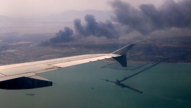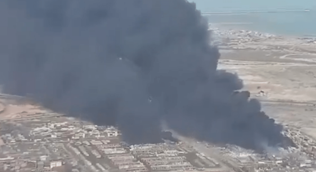 希德拉賈伊港發生威力強大的爆炸,濃濃黑煙直沖天際。
