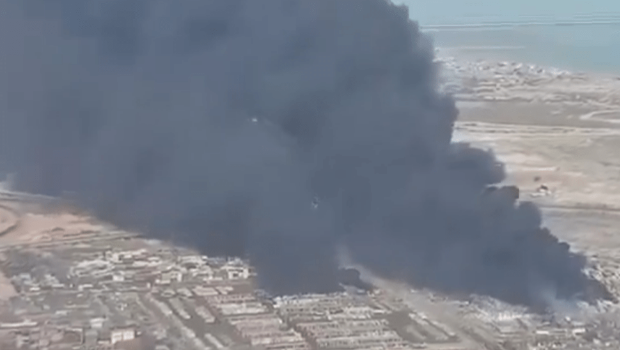 ▲希德拉賈伊港發生威力強大的爆炸,濃濃黑煙直沖天際。X/@TankerTrackers