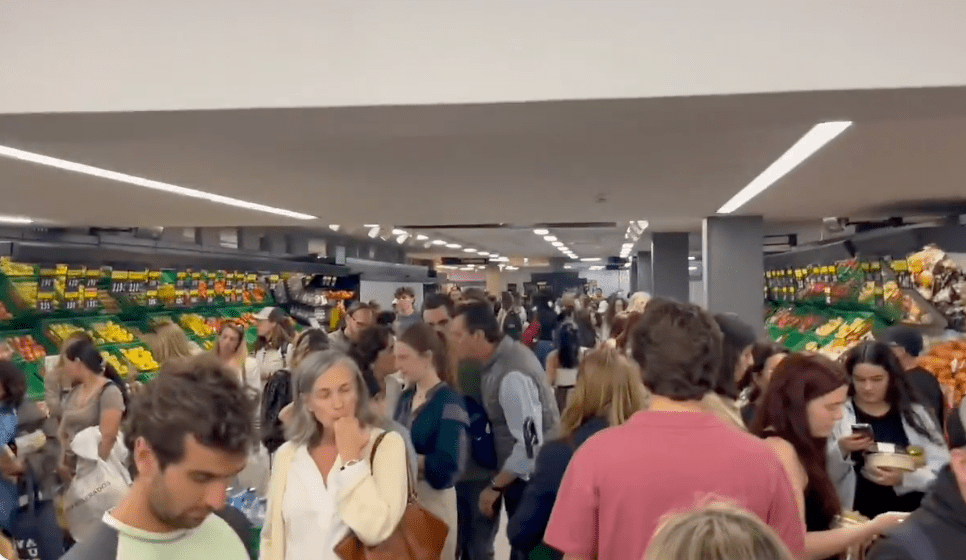 ▲由于擔心電力未能在短時間內恢復,不少民眾涌到超級市場爭相購買日常物資。 X@joseletemuniz