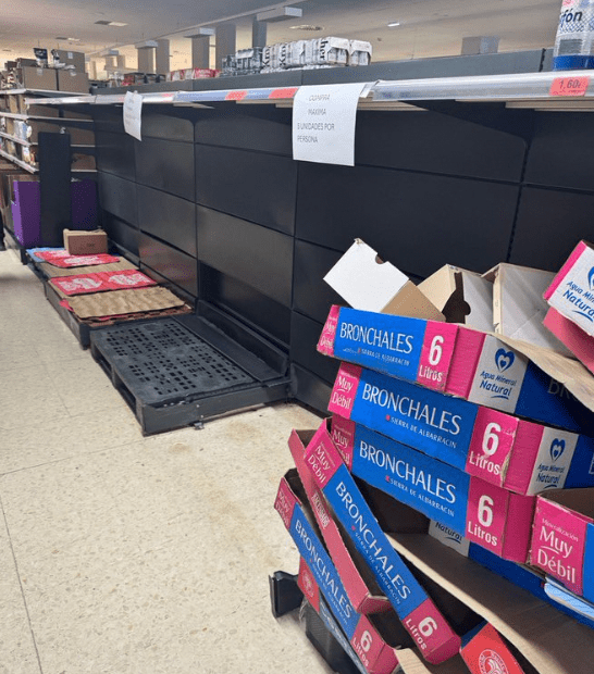 超市內的瓶裝水貨架被一掃而空。 X@YR4Monitoring