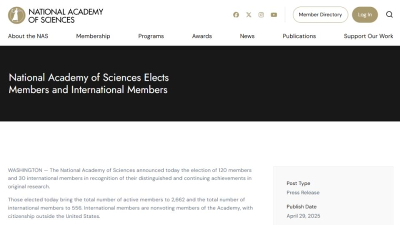 4月30日,美國國家科學院公布了新當選的院士和外籍院士。此次共計120名院士和30名外籍院士當選。諾獎得主、中國中醫科學院青蒿素研究中心屠呦呦教授當選外籍院士。