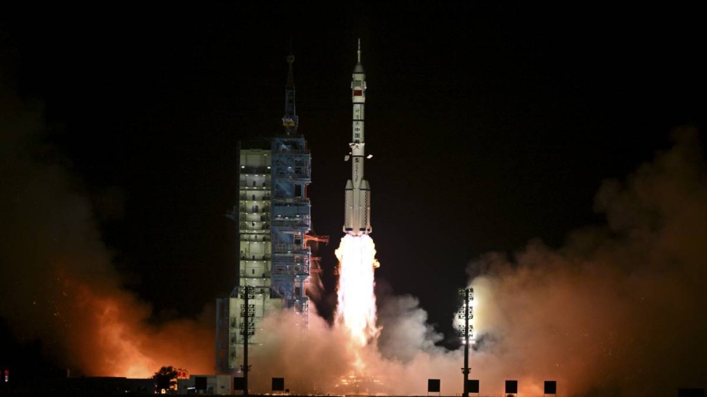 ▲2024年10月30日,搭載神舟十九號載人飛船的長征二號F遙十九運載火箭在酒泉衛星發射中心點火發射。新華社