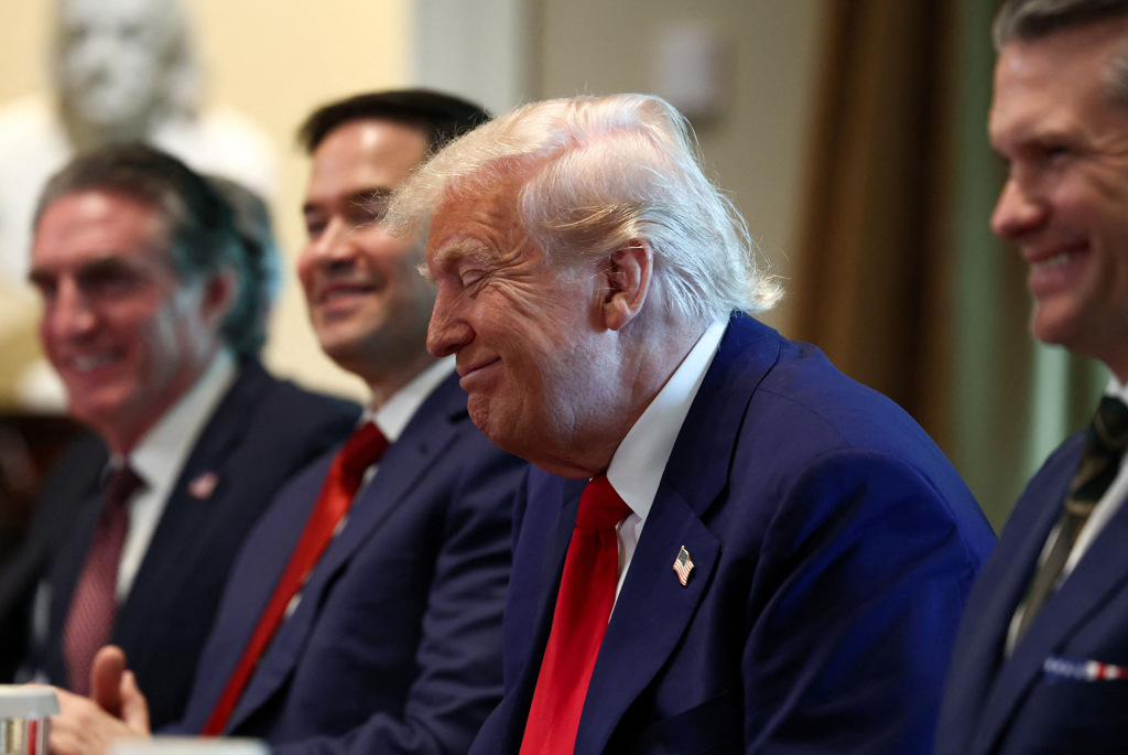 ▲美國總統特朗普4月30日在白宮舉行內閣會議的神情。(路透)